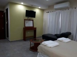 Habitaciones con baño privado, TV, ventiladores. No posee cochera. No dispone de salón comedor. Dispone de parrillas y pileta de natación.