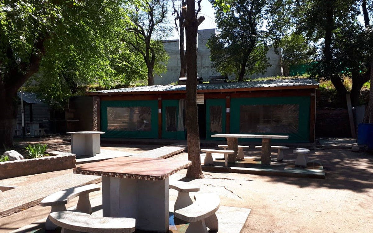 Cuenta con habitaciones con baño privado, con ventiladores y TV. Ropa de cama y toallas con cargo. En el sector de alojamiento poseen una sala de estar con Wifi, TV 29”, cocina (llevar elementos de cocina y vajilla). El predio cuenta con pileta, quinchos externos (con heladera y freezer), asadores individuales, cancha de fútbol, tenis, básquet y frontón, salón de bochas. Poseen un salón comedor concesionado con precios accesibles. Bar y proveeduría. Cochera cubierta.